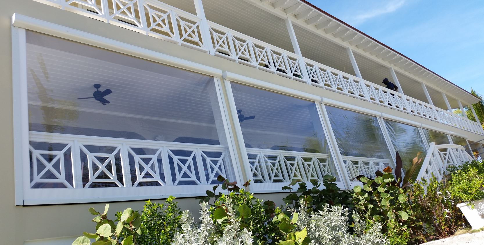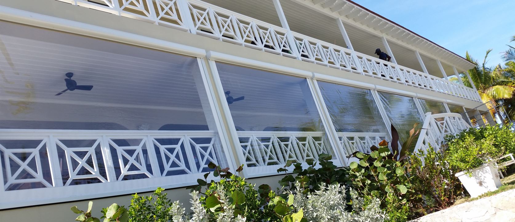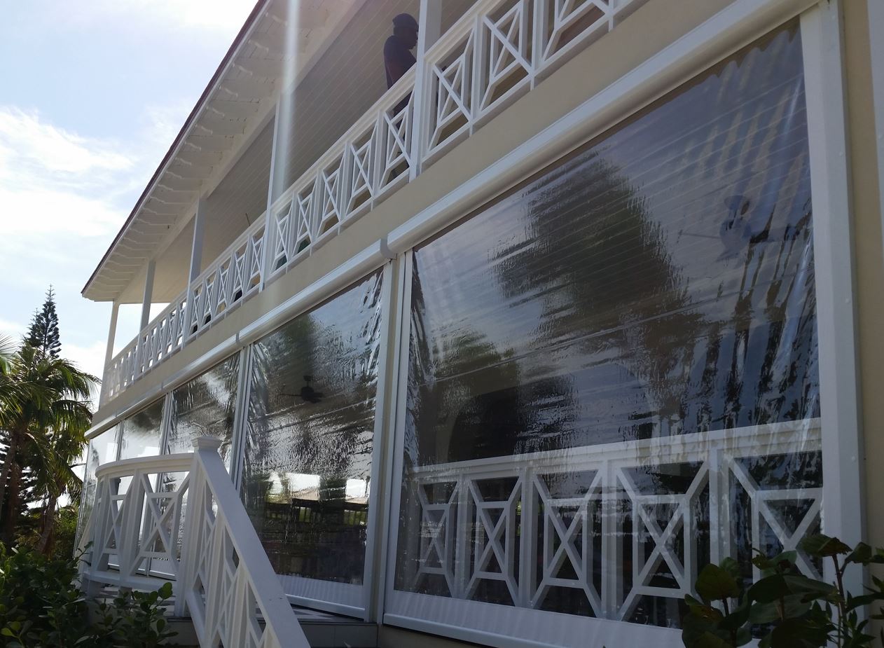 Roll Down Weather Curtains are designed to keep too strong carribbean winds and rain out of your porch and deck areas